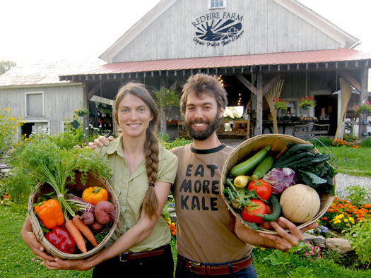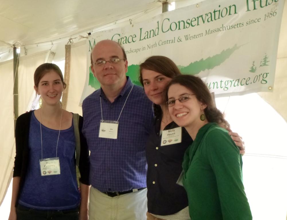 AmeriCorps members Willa Caughey, Molly Heuss, and Teresa Arey with Congressman Jim McGovern, the keynote speaker at Mount Grace's 2012 Annual Meeting at Red Fire Farm.