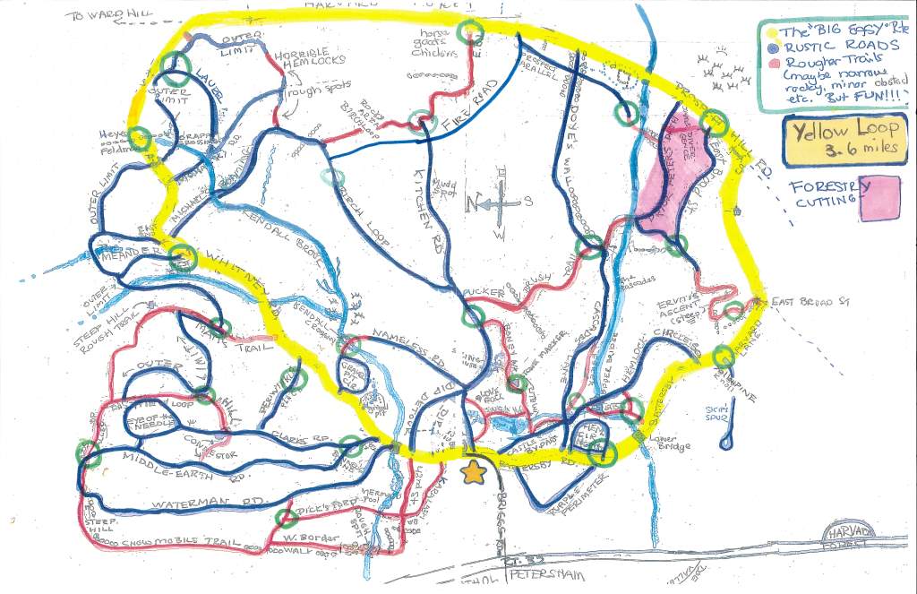 When Susie, then an art teacher in the Orange Elementary schools, and Ben, Treasurer for the Town of Athol, moved to the house in 1998 they brought Susie’s Norwegian Fjord horse Elke and a love of trails, trail building, and rustic statuary. Today garden gnomes and the occasional mermaid are scattered throughout the property, peering out at hikers and riders as they use the miles of foot and equestrian trails.