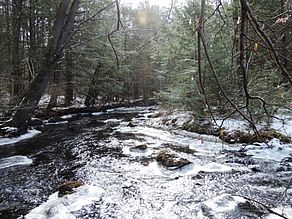 Nearly a half-mile stretch of the West Branch of the Tully River flows through Gifford Memorial Forest. Cart roads and an unmarked fishing trail along the riverbank provide a scenic wilderness loop trail for anglers and others.