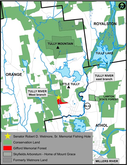 In 2002, the Gifford family protected their land as part of the Tully Initiative, a two-year partnership of Mount Grace, local landowners, and the State, which protected 9,000+ acres and was inspired by the celebration of the conservation of other Wetmore family land.