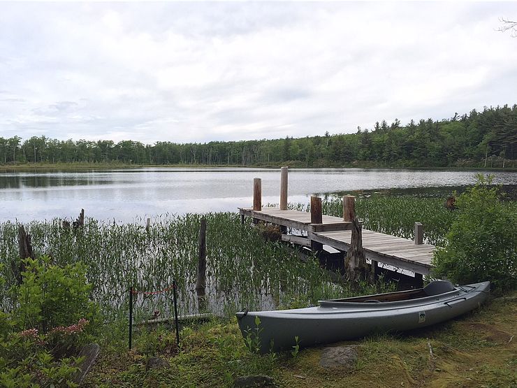 It’s easy for the nearby community to access this beautiful public outdoors space. A 3.2-mile hiking trail, Nate’s Run (named after Len and Amy’s grandson, who regularly spent hours in the woods) encircles the pond, and connects to the longer Midstate Trail, which runs along the eastern shore of the pond. Len regularly encounters hikers (even more than normal during the COVID pandemic). A publicly accessible dock juts out into the water, with a rowboat and canoe visitors can use to go out into the pond’s center. A lean-to, constructed in the mid 1970’s by Boy Scouts, sometimes serves as shelter for passing hikers, and the Boy Scouts themselves still use it each summer for an overnight backpacking trip.