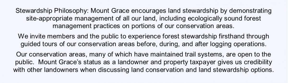 Help is needed to support threatened conservation funding, to support Mount Grace and other land trusts working to save land, and to promote and assist implementing conservation options. Why spend precious time and energy in a divisive effort to re-designate 100,000 acres of already conserved land when 1,000,000 acres of unprotected land remains at risk?