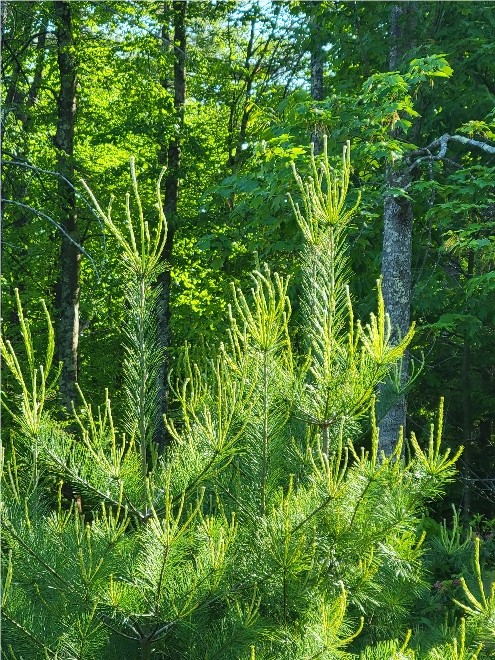 When the photoperiod (day length) is right, buds swell, then open, leaves or needles emerge and the shoot grows. Generally, and subject to all the usual caveats, trees in our area accomplish most of their primary growth early and secondary growth later in the growing season. (Taller and wider first, fatter second.) Find some nearby white pines that are about 5 or 10 feet tall. If you observe them every few days beginning in mid-May and through July, you can get a good sense of when shoot growth is fast and when it slows (Fig. 2).
