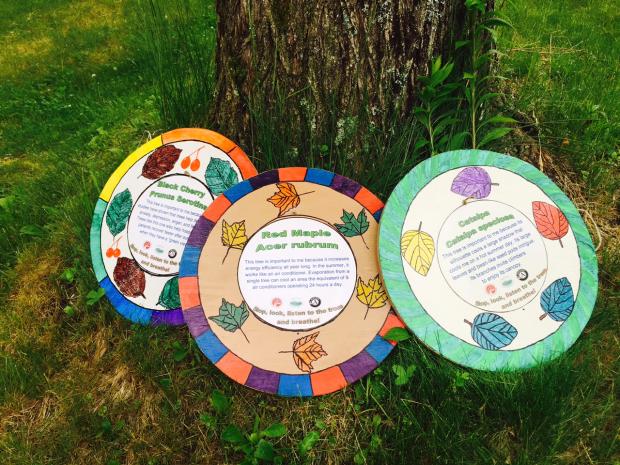 “We can often take our trees and woodlands for granted since they are so abundant in these parts,” says Apfelbaum. “The signs encourage us to stop and note all the services and the good that living trees provide us, from carbon sequestration to a sense of wellness.” The brightly-colored signs along the Skyfields trail explain the various benefits of black cherry, red maple, catalpa, paper birch, and many of the other trees representative of a typical northeastern forest.