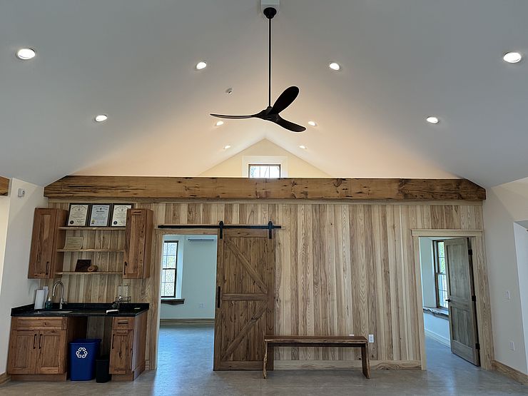 The Conservation Barn will feature three offices, a kitchenette, two bathrooms, storage space, and a large conference room that will double as an events space. Leading up to the building from our Skyfields Arboretum parking area is a newly paved ADA-accessible walkway that wraps around the building.
