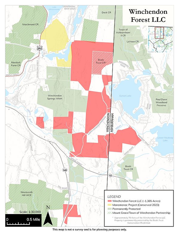 Protection the property is aligned with Winchendon’s 2020 Community Master Plan and its 2015 Open Space and Recreation Plan based on it’s large acreage, biodiversity, ecological value, and the role it plays in connecting thousands of acres of undeveloped, unfragmented land. Portions of the property also lie in the target area for land acquisition and conservation specified by the Winchendon Open Space and Recreation Plan. Protection of the land in Ashburnham is also supported by the 2023 Ashburnham Open Space and Recreation Plan.