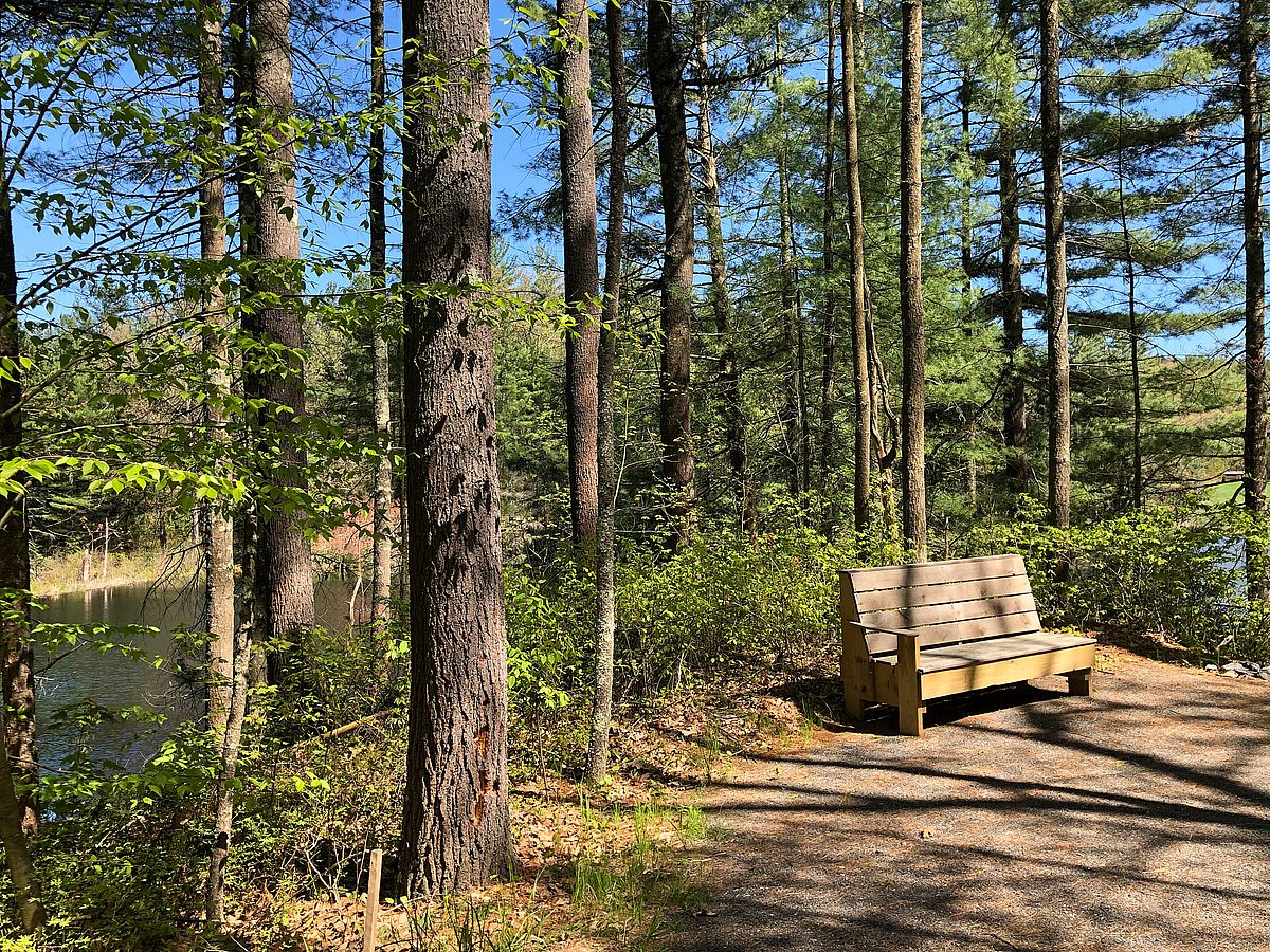 Located just south of Northfield center on Route 63, Alderbrook Meadows Wildlife Sanctuary is a 5-acre Conservation Area of mature forest along a beaver impounded wetland that is home to a diverse array of birds and other wildlife. Thanks to a dedicated group of volunteers from the Northfield area and a Massachusetts Department of Conservation and Recreational Trails Grant, the Gunnery Sergeant Jeffrey S. Ames Accessible Nature Trail was created in 2018. This loop trail that winds through a towering grove of white pines and culminates at an observation deck overlooking a beautiful hidden pond is designed to meet the United States Forest Service's guidelines for accessibility. The trail allows people of all ages and abilities to immerse themselves in nature. Please be advised that some sections of the trail are moderately challenging, with a grade of approximately 12%.