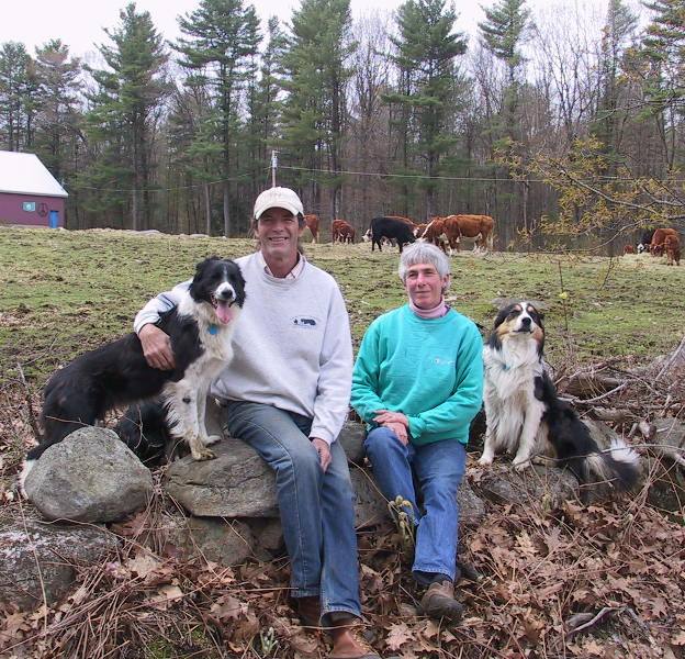 Aurora Ranch sells free range chickens and eggs, grass fed pasture raised beef, lamb, sheepskins and fleece from pedigree Romney sheep. Owners Kate and George also breed and train classic working Border Collies.