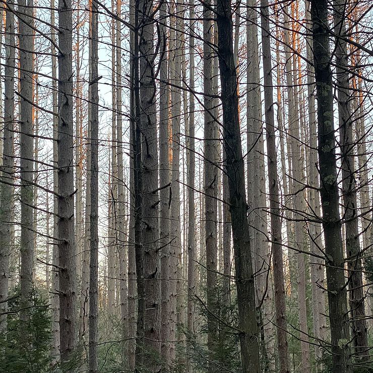 - A single age class of pines have dominated the land since its farm fields were abandoned - we're removing the unhealthy and diseased pines to make room for a more diverse-aged forest.